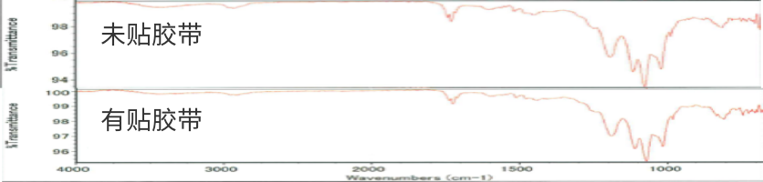 分析比較未貼膠帶的基板表面和有貼膠帶的剝離后基板表面的光譜, 并無差異。